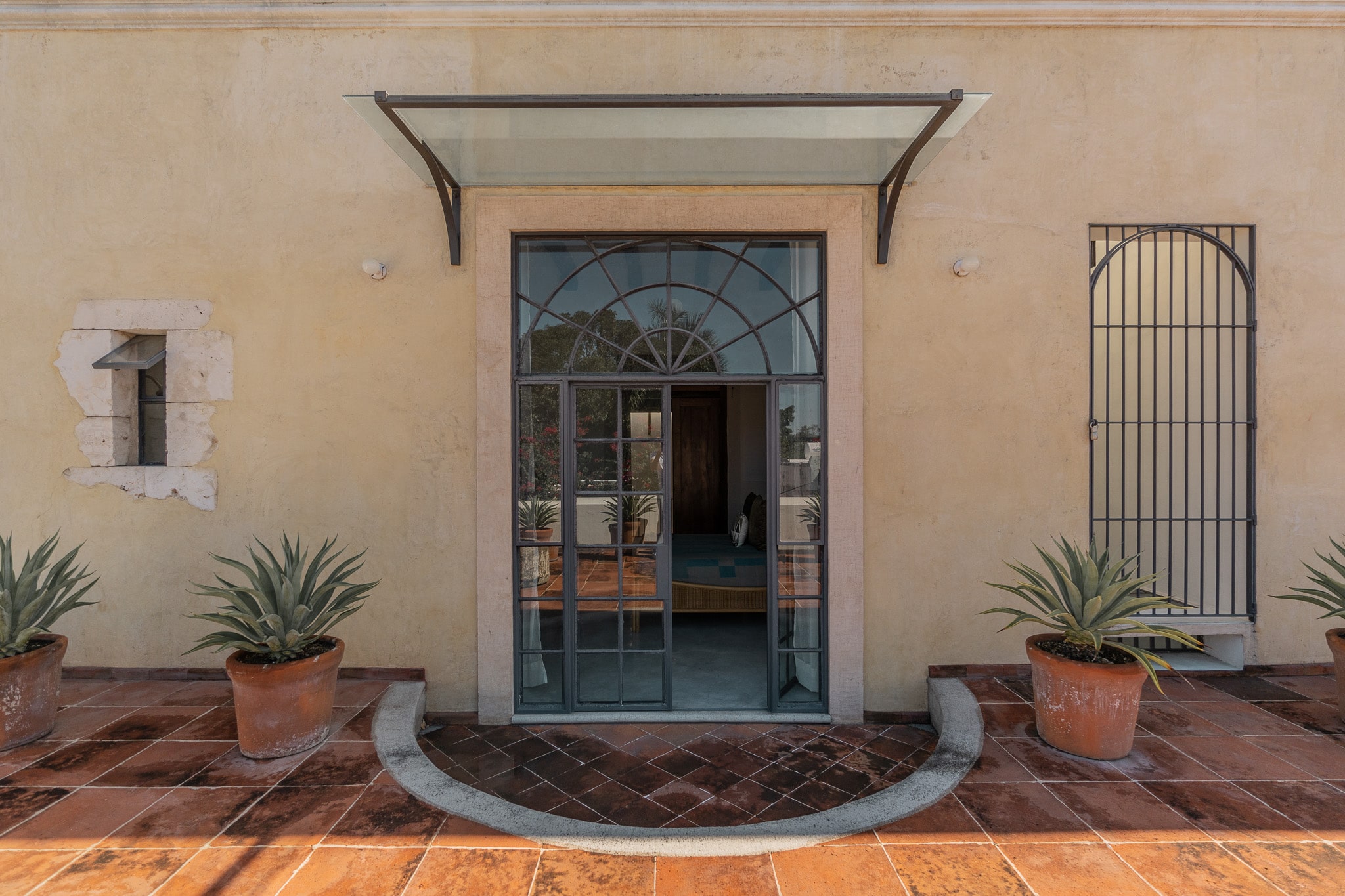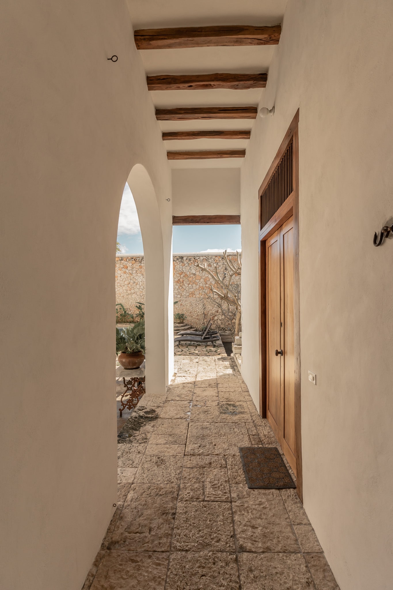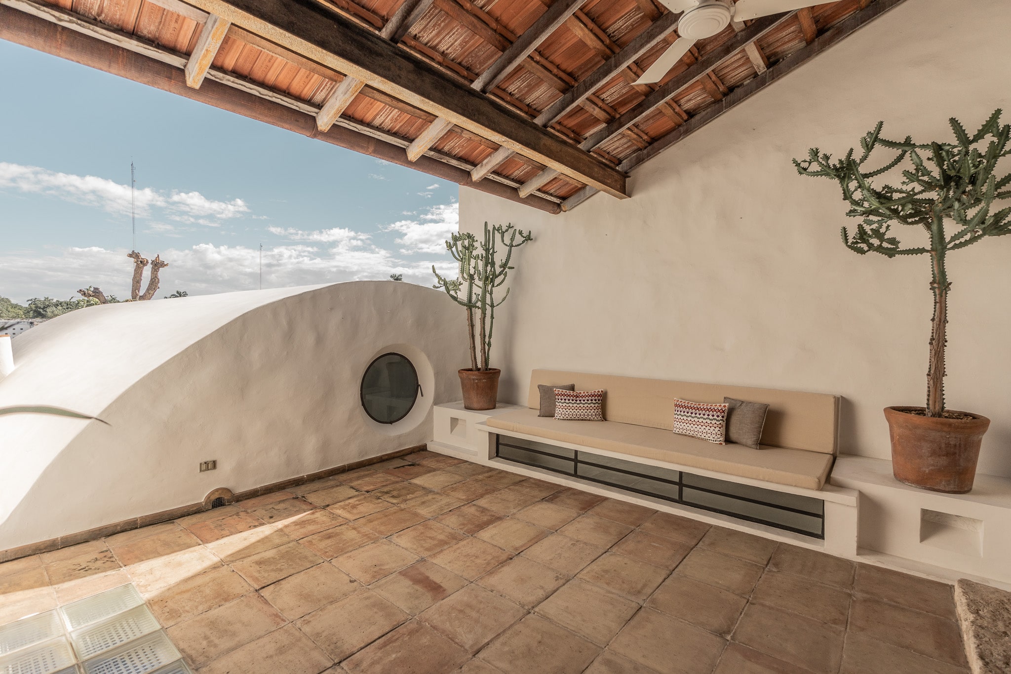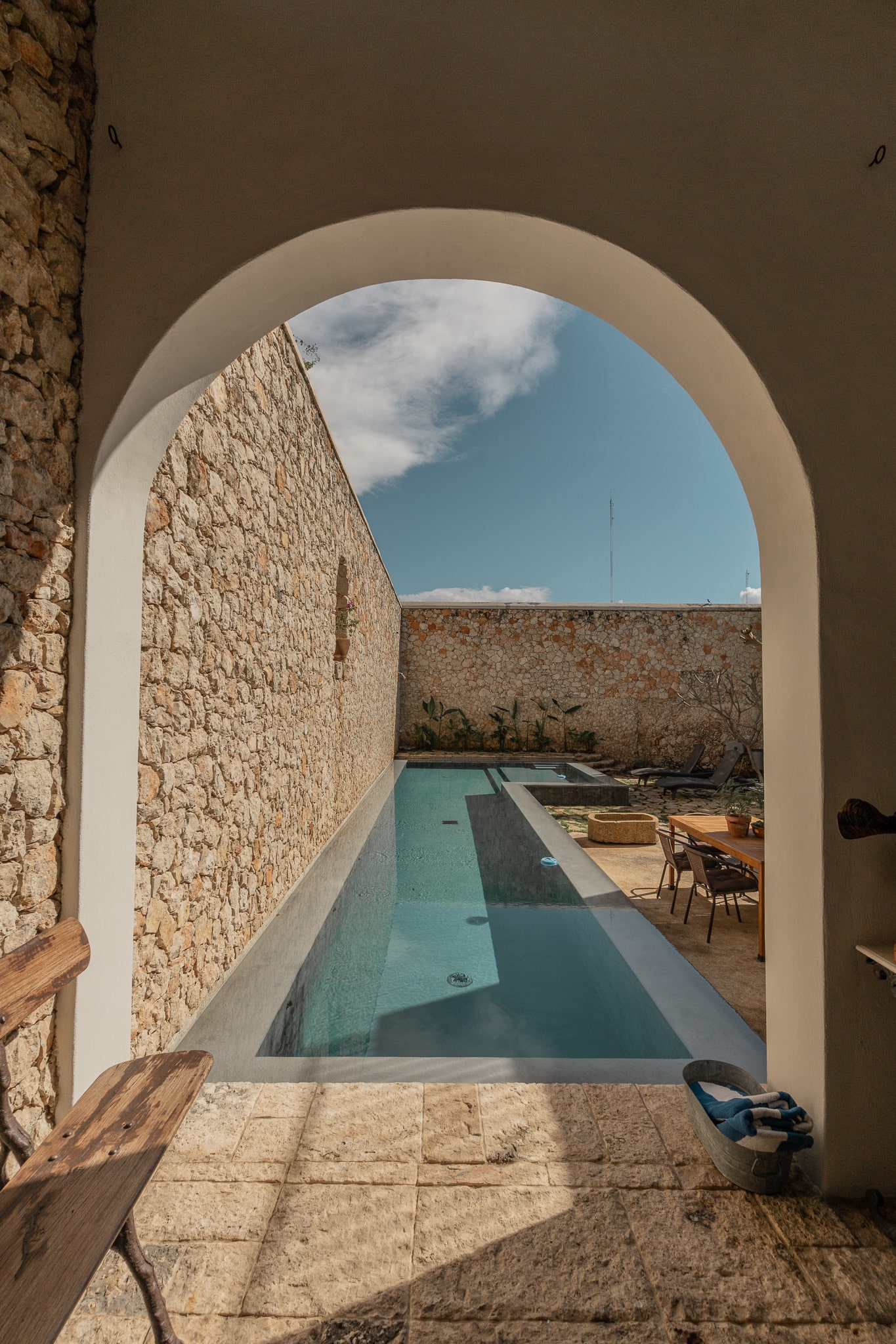 Con una superficie construida de 525m2 y 536m2 de terreno, esta exclusiva casa colonial de estilo mediterráneo cuenta con distintos niveles, con varias terrazas, amplio jardín que reúne grandes árboles y plantas tropicales, incluyendo tres especies de lirios acuáticos que florecen en un antiguo bebedero de una hacienda henequenera de la zona y una amplia alberca con un pequeño canal de nado.