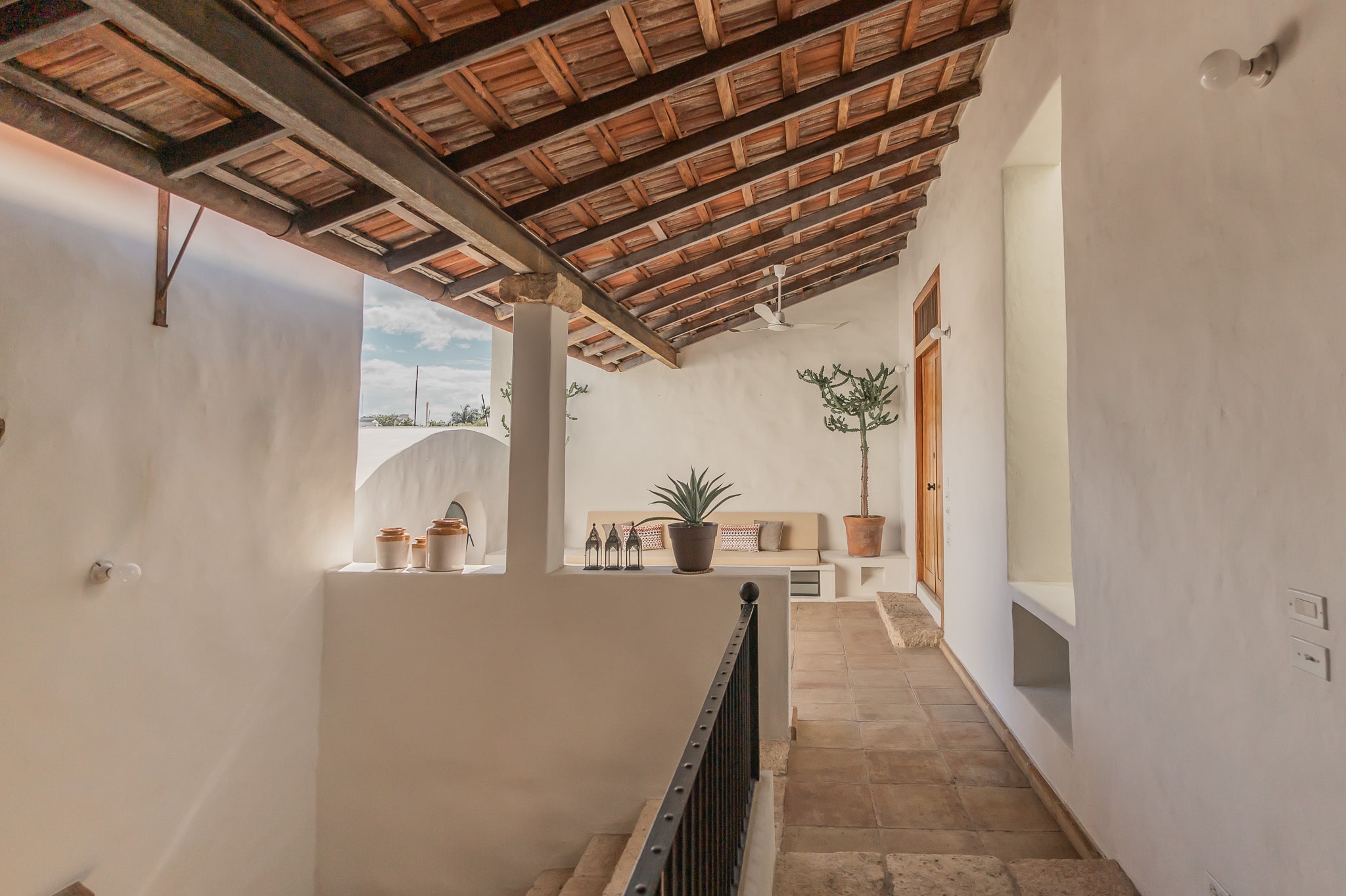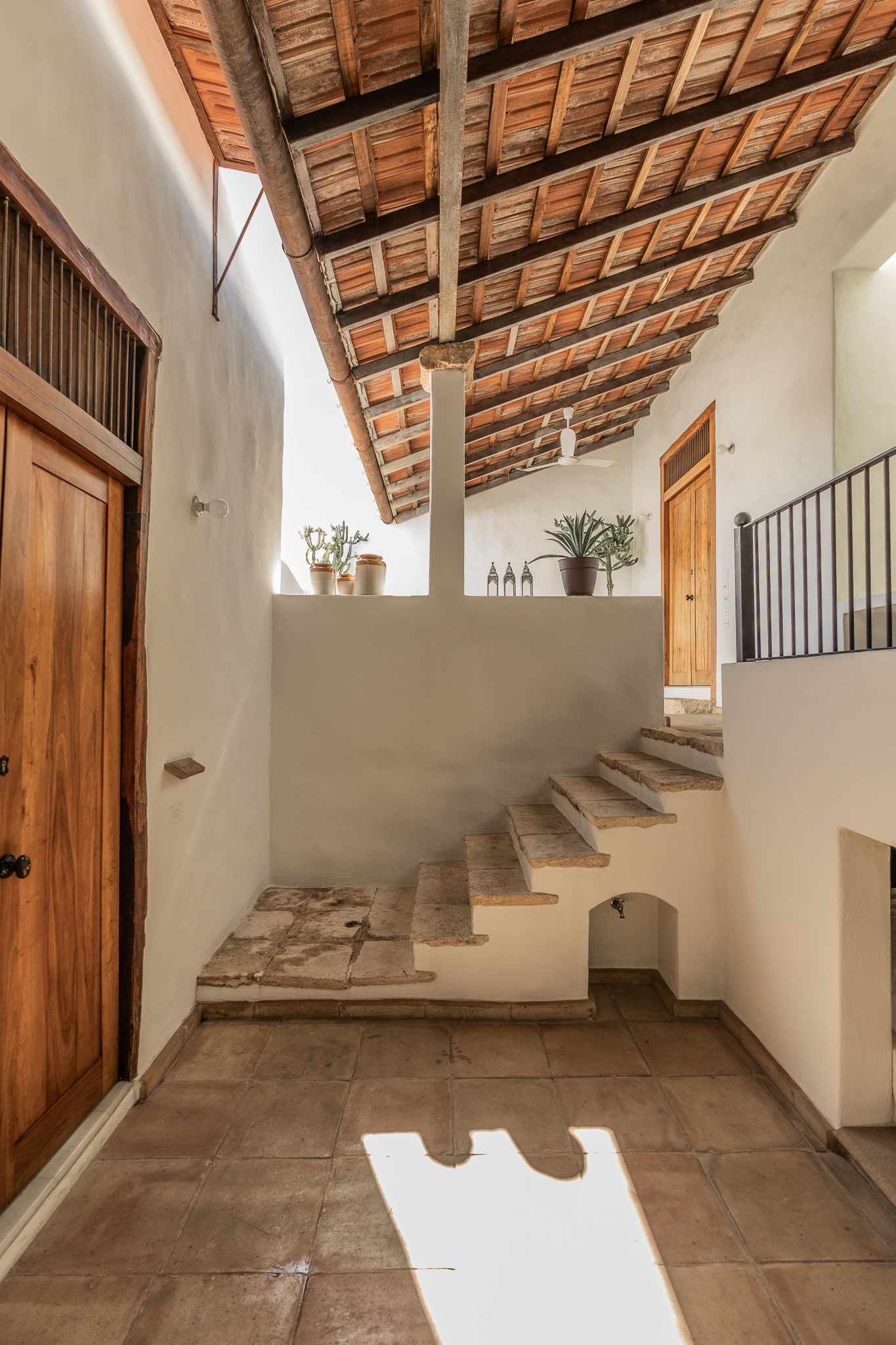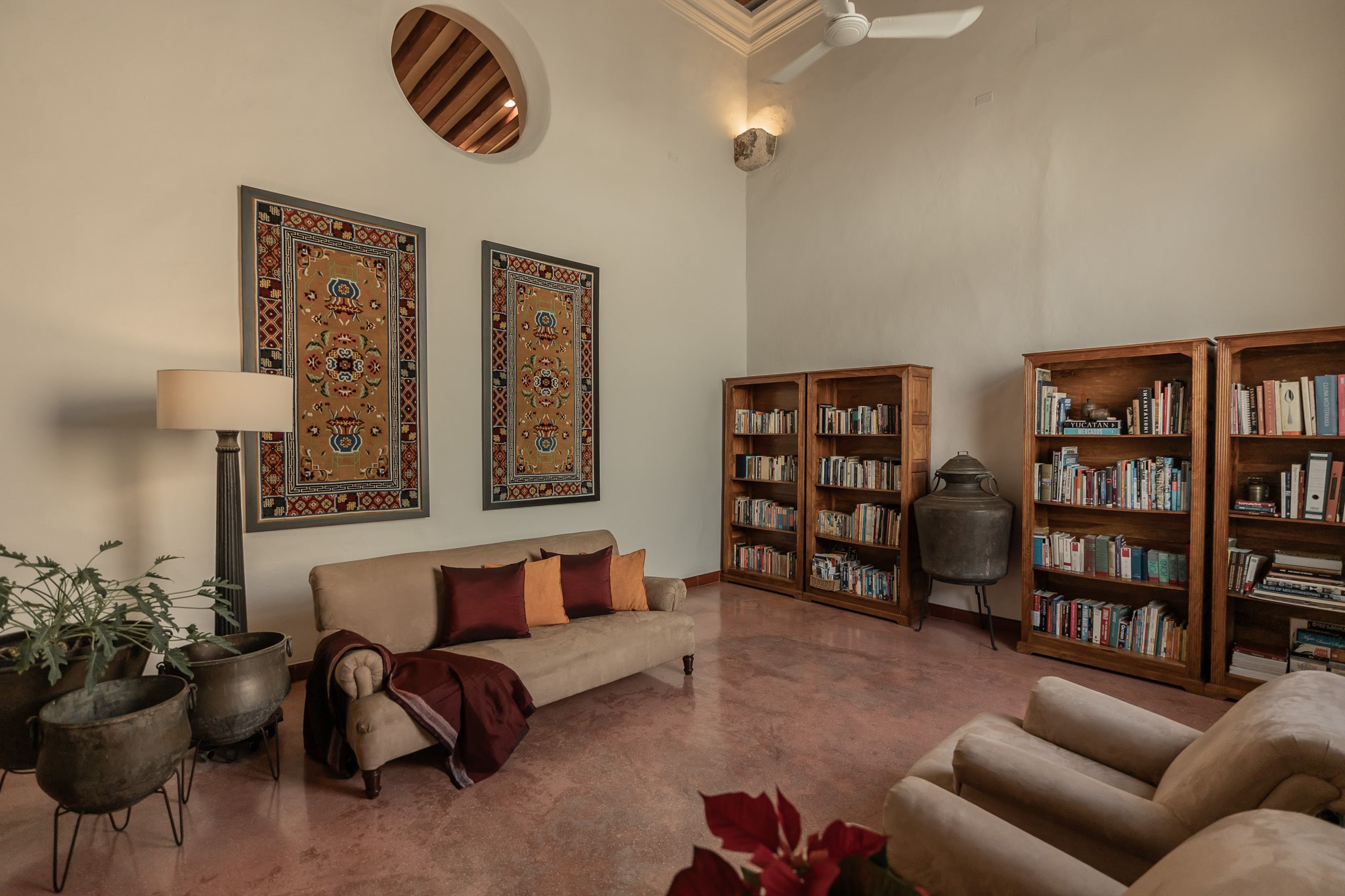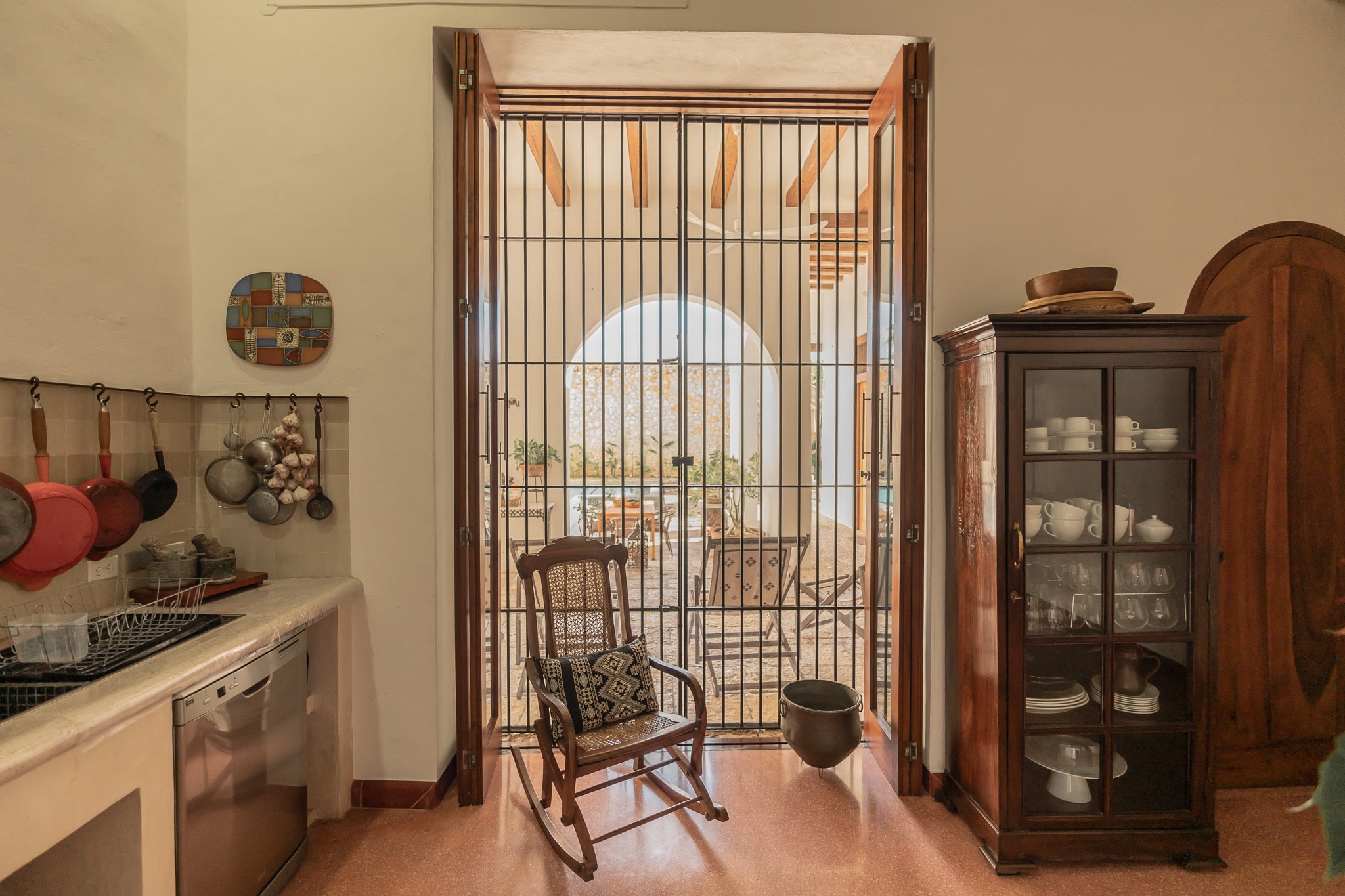 Con una superficie construida de 525m2 y 536m2 de terreno, esta exclusiva casa colonial de estilo mediterráneo cuenta con distintos niveles, con varias terrazas, amplio jardín que reúne grandes árboles y plantas tropicales, incluyendo tres especies de lirios acuáticos que florecen en un antiguo bebedero de una hacienda henequenera de la zona y una amplia alberca con un pequeño canal de nado.